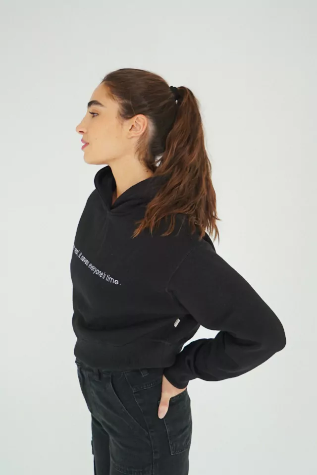 BLUSÃO CROPPED DE MOLETOM COM ESTAMPA APLICADA
