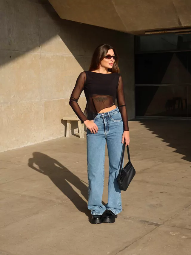CALÇA WIDE LEG COM RASGOS LOCALIZADOS E ABERTUR NA BARRA